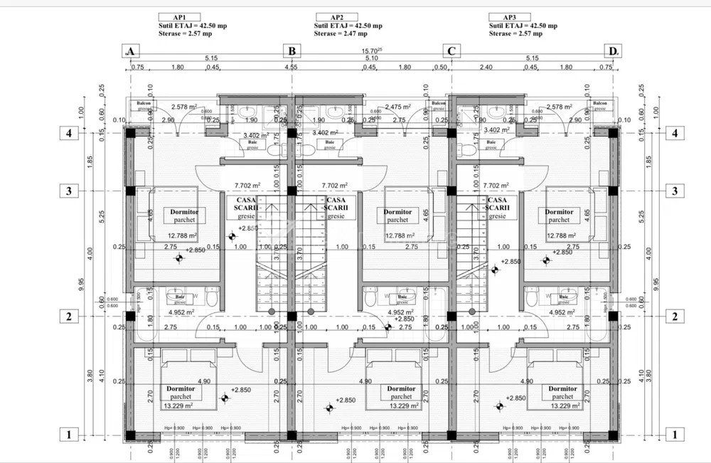 Teren cu proiect autorizat pentru 3 case insiruite in Floresti Floresti, zona Teilor teren intravilan • 509 m2 pret vanzare 124.900 € + TVA + 6 + 3 Vandut Caracteristici Tip imobil Teren intravilan Teren pentru constructii civile Suprafata 509 m2 Nr. fronturi 1 Vecinatati si puncte de interes in zona Amenajare strazi (Asfaltate) Descrierea terenului Welt Imobiliare va prezinta o oportunitate unica de investitie / dezvoltare rezidentiala Teren cu proiect autorizat pentru constructia a 3 case insiruite moderne, situat in Floresti, judetul Cluj. Proiectul permite inceperea imediata a lucrarilor, fiind ideal pentru investitori sau dezvoltatori imobiliari. Caracteristici teren si proiect: Suprafata teren: 509 mp + 124 mp cota parte drum de acces. Suprafata construita la sol: 142 mp. Suprafata desfasurata: 426 mp (fara terase). Suprafata utila totala: 342 mp. Toate utilitatile disponibile la frontul parcelei. Configuratie case insiruite: Casa 1 Suprafata utila: 109.05 mp. Terase: 32.3 mp. Gradina: 73.7 mp. Parter: 40.50 mp utili, terasa 10.30 mp, parcare supraterana. Etaj: 42.5 mp utili, terasa 2.57 mp. Etaj retras: 26.05 mp utili, terasa 19.41 mp. Casa 2 Suprafata utila: 123.8 mp. Terase: 17.72 mp. Gradina: 24 mp. Parter: 40.50 mp utili, terasa 10.30 mp, parcare supraterana. Etaj: 42.5 mp utili, terasa 2.47 mp. Etaj retras: 40.80 mp utili, terasa 4.95 mp. Casa 3 Suprafata utila: 109.05 mp. Terase: 32.3 mp. Gradina: 73.7 mp. Parter: 40.50 mp utili, terasa 10.30 mp, parcare supraterana. Etaj: 42.5 mp utili, terasa 2.57 mp. Etaj retras: 26.05 mp utili, terasa 19.41 mp. Avantaje: Zona cu potential ridicat de dezvoltare in Floresti. Proiect modern, conceput pentru eficienta si functionalitate. Posibilitate de personalizare a constructiei. Contacteaza-ne pentru mai multe detalii! ID Proprietate - P46258 Utilitati Apa, Canalizare, Gaz, Curent electric Numar vizualizari: 579 Actualizat: 2025-03-24 16:30:41