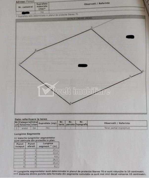 Caracteristici Tip imobil Teren intravilan Teren pentru constructii civile Suprafata 741 m2 Nr. fronturi 1 Vecinatati si puncte de interes in zona Amenajare strazi (Pietruite) Descrierea terenului Va propunem spre achizitie un teren intravilan situat in satul Luna de Sus, comuna Floresti, la iesirea spre satul Vlaha. Terenul este plat, iar utilitatile sunt la parcelele din imediata vecinatate. Terenul se preteaza pentru o locuinta individuala sau pentru constructia unui duplex. Terenul este intabulat, cadastrat si exista certificat de urbanism de informare. Nu necesita elaborare PUZ. ID Proprietate - P32786 Utilitati Utilitati in apropiere Numar vizualizari: 1161 Actualizat: 2024-01-25 14:27:59
