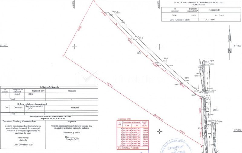 Teren 10.175mp cu AC hala de 1.698mp, loc. Tureni - Cluj Tureni teren intravilan • 10175 m2 • front 55 m pret vanzare negociabil 559.625 € + TVA + 10 + 7 Vandut Caracteristici Tip imobil Teren intravilan Teren pentru constructii civile Suprafata 10175 m2 Front 55 m Nr. fronturi 2 Vecinatati si puncte de interes in zona DN1 Cluj - Turda, comuna Tureni Amenajare strazi (Asfaltate) Descrierea terenului Va prezentam spre vanzare un teren intravilan cu autorizatie de constructie pentru hala. Este situat in localitatea Tureni la 21km de centrul orasului Cluj-Napoca si la 400m de DN1 si restaurantul Paprika. Suprafata terenului este de 10.175mp cu front la 2 strazi. Se vinde cu autorizatie de constructie pentru inceperea imediata a lucrarilor. Utilitatile sunt curent, apa, gaz la front de parcela. Are aviz de racordare electrica pentru putere de 185 KwA. Pentru informatii suplimentare va rog sa ne contactati. ID Proprietate - P26770 Utilitati Utilitati in apropiere, Apa, Gaz, Curent electric, Curent trifazic Numar vizualizari: 4115 Actualizat: 2021-10-14 18:04:55