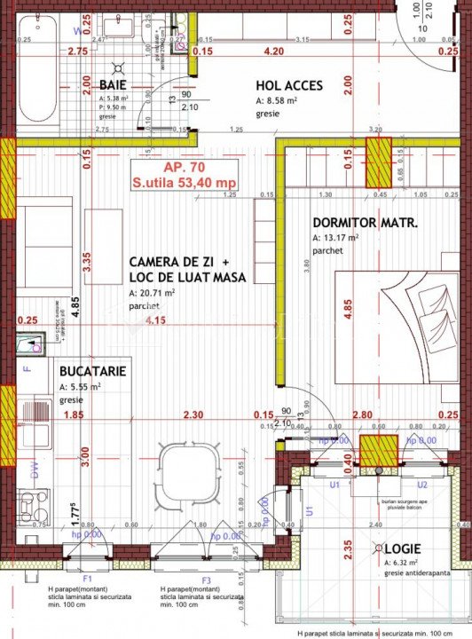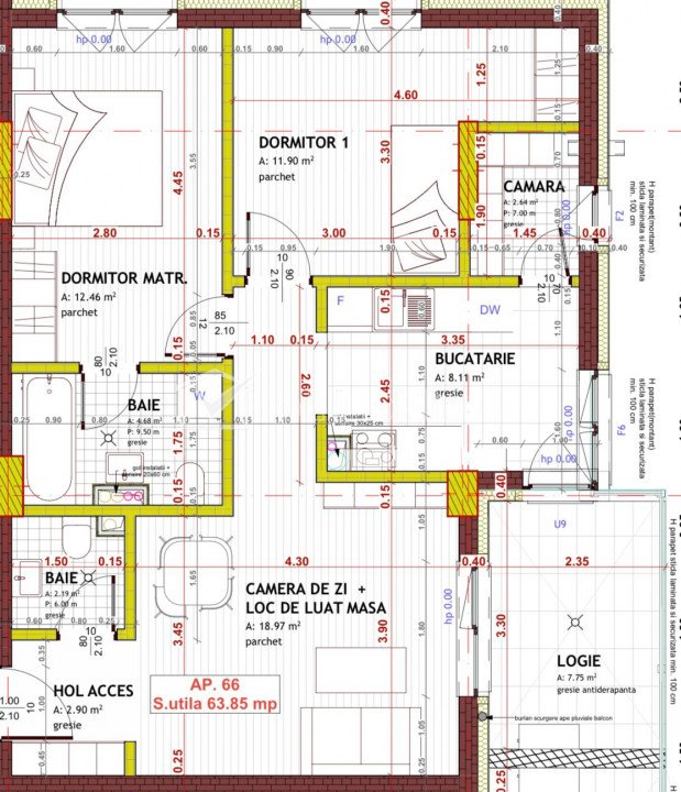 Caractéristiques Type de bien Appartement Non. Chambres 1 Non. cuisines 1 Non. salles de bains 1 Non. balcons 1 Le stationnement non Surface utile 37.45 m2 Compartiments Decomandat Confort 1 Etage 3/6 Construit avec Brique Description de l'appartement Nous vous proposons un nouveau projet immobilier situé dans le quartier le plus accessible de Floresti, rue Tineretului, près de Somes. Le projet se compose de quatre bâtiments de plain-pied (S+R+6E) comprenant des espaces commerciaux au rez-de-chaussée, des espaces verts et des allées piétonnes. Les blocs sont en briques et sont équipés du chauffage individuel par appartement, du chauffage au sol, du triple vitrage, d'une porte anti-effraction et d'un ascenseur. Les appartements sont livrés finis et comprennent : carrelage, carrelage au sol, parquet, portes intérieures, sanitaires, prises, interrupteurs et luminaires. Les prix indiqués incluent la TVA. Un parking souterrain est disponible moyennant un supplément. Date de livraison : décembre 2025 ID de la propriété - P46856 Utilités, Finissages Utilités générales: Électricité, Eau, Gaz, Evacuation des eaux usées, TV CâbleSystème chauffage Chauffage, Chauffage par le plancherFinissages Parquet, Grès, Lavable Nombre de vues: 1726 Réactualiser: 2025-11-13 10:09:46