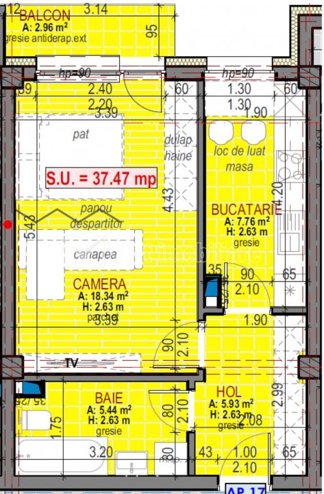 Caractéristiques Type de bien Appartement Non. Chambres 1 Non. cuisines 1 Non. salles de bains 1 Non. balcons 1 Le stationnement oui Surface construite 47 m2 Surface utile 37.47 m2 Compartiments Decomandat Confort 1 Etage 3/2 Construit avec Brique Construction 2024 Description de l'appartement Welt Imobiliare propose à la vente un appartement indépendant et fini d'une pièce, rue Urusagului, dans un quartier en plein développement. L'appartement est situé au 3e étage d'un immeuble de 3 étages et se compose comme suit : -> Entrée ; -> Cuisine ; -> Chambre ; -> Balcon, d'une surface habitable de 3 m². Des travaux d'aménagement intérieur sont en cours ; des photos seront bientôt disponibles. L'appartement est sans charges et les modes de paiement sont variés. Une place de parking souterrain est disponible séparément au prix de 5 000 €. Pour plus de détails et pour une visite, veuillez nous contacter. ID de la propriété - P48595 Utilités, Finissages Utilités générales: Électricité, Eau, Gaz, Evacuation des eaux uséesSystème chauffage Chauffage, RadiateursFinissages Parquet, Grès, Faïence, Lavable, Portes intérieuresEquipements Compteurs gaz Nombre de vues: 1034 Réactualiser: 2025-11-13 10:10:07