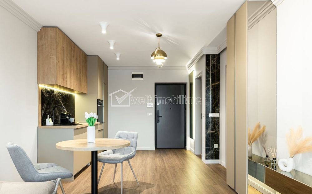Caractéristiques Type de bien Appartement Non. Chambres 2 Non. cuisines 1 Non. salles de bains 1 Non. balcons 1 Le stationnement oui Surface construite 52 m2 Surface utile 42 m2 Compartiments Semidecomandat Etage 2/4 Construction 2020 Description de l'appartement Nous vous proposons un appartement de deux pièces dans un immeuble neuf du centre-ville de Cluj-Napoca. D'une surface habitable de 42 m², il comprend un séjour avec cuisine, une chambre, une salle de bains et un balcon. Il est situé au 2e étage. Il est meublé et aménagé de façon moderne. Il convient aussi bien à une résidence principale qu'à une location longue durée ou à un hôtel. Il dispose également d'une place de parking souterrain, disponible à l'achat séparément pour un montant de 20 000 euros. ID de la propriété - P48940 Utilités, Finissages Utilités générales: Électricité, Eau, Gaz, Evacuation des eaux uséesSystème chauffage Chauffage, Chauffage, Chauffage par le plancherFinissages Parquet, Grès, Lavable Nombre de vues: 426 Réactualiser: 2025-07-18 09:00:42