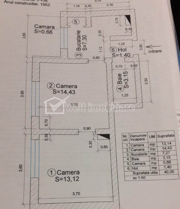 Appartement 2 chambres à vendre dans Cluj-napoca Cluj-Napoca, zone Semicentral 2 chambres • 40 m2 • 1 salle de bain • étage rez-de-chaussée/3 • semidecomandatfinisat • mobilat partial prix de vente négociable 134 000 € + 8 + 5 Vendu Caractéristiques Type de bien Appartement Non. Chambres 2 Non. cuisines 1 Non. salles de bains 1 Le stationnement non Surface construite 48 m2 Surface utile 40 m2 Compartiments Semidecomandat Etage rez-de-chaussée/3 Description de l'appartement Welt Imobiliare a le plaisir de vous proposer à la vente un appartement de 2 pièces situé dans un immeuble du Centre. L'appartement est au rez-de-chaussée d'un immeuble de 3 étages et a une superficie utile de 40,5 mètres carrés, répartie comme suit : - 1 séjour ; - 1 cuisine ; - 1 chambre ; - 1 salle de bain. Les finitions et équipements de l'appartement sont modernes. L'appartement est vendu meublé et équipé. Elle dispose d'un espace vert devant l'îlot, et le confort thermique est assuré par son propre système de chauffage central. Idéal pour investir ou pour ceux qui souhaitent être proches de tout le confort offert par le centre-ville accessible à pied. N'hésitez pas à nous contacter pour plus de détails ! ID de la propriété - P37637 Utilités, Finissages Utilités générales: Électricité, Eau, Evacuation des eaux uséesSystème chauffage Chauffage, RadiateursFinissages Parquet, Grès, Lavable, Portes intérieures Nombre de vues: 1487 Réactualiser: 2024-06-27 14:30:41