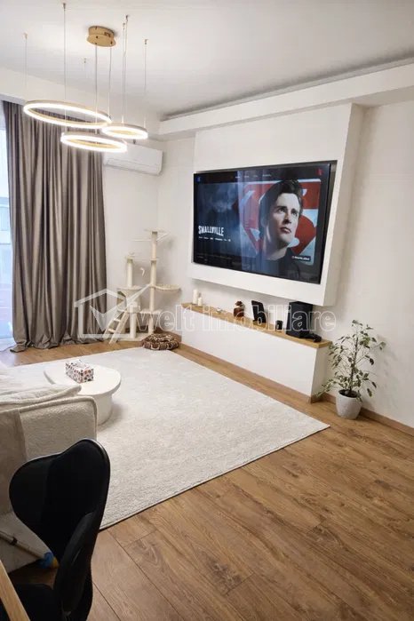 + 7 + 4 Caractéristiques Type de bien Appartement Non. Chambres 2 Non. cuisines 1 Non. salles de bains 1 Non. balcons 1 Le stationnement oui Surface construite 69 m2 Surface utile 54 m2 Compartiments Semidecomandat Confort 1 Etage 4/6 Construit avec Brique Construction 2023 Description de l'appartement Welt Imobiliare propose à la vente un appartement lumineux et moderne de 2 pièces, situé dans le quartier d'Intre Lacuri, au 4ème étage d'un immeuble neuf de 6 étages avec ascenseur, construit en 2023, en briques et isolé par l'extérieur. L'agencement est fonctionnel : hall d'entrée, séjour/cuisine, salle de bains, chambre, balcon. Surface totale : 63 m². L'appartement est vendu entièrement meublé et équipé, conformément aux photos. Une place de parking en sous-sol est disponible en option au prix de 12 000 € HT. Situation et atouts : à proximité des supermarchés Lidl, Kaufland et Leroy Merlin, du centre commercial Iulius Mall, et accès facile aux autres commerces et aux transports en commun. Paiement par virement bancaire possible. ID de la propriété - P53550 Utilités, Finissages Utilités générales: Électricité, Eau, Gaz, Evacuation des eaux uséesSystème chauffage Chauffage par le plancherClimatisation ConditionnementFinissages Parquet, Grès, Faïence, Lavable Nombre de vues: 37 Réactualiser: 2026-03-02 13:55:59