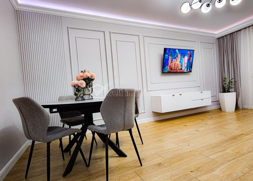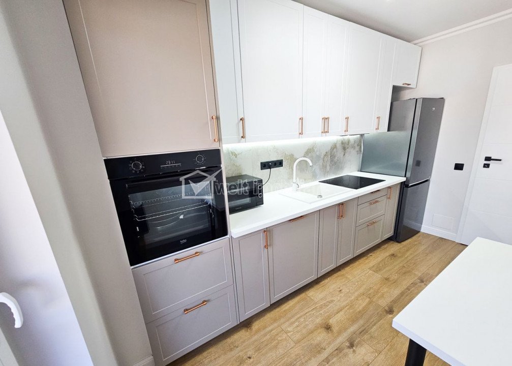 Caractéristiques Type de bien Appartement Non. Chambres 2 Non. cuisines 1 Non. salles de bains 1 Non. balcons 1 Le stationnement non Surface utile 55 m2 Compartiments Decomandat Etage 4/4 Description de l'appartement Welt Imobiliare a le plaisir de vous présenter un appartement moderne, ultra-fini, prêt à emménager ! L'appartement bénéficie d'un aménagement moderne, comprenant : séjour, chambre, cuisine séparée, salle de bain et balcon de 6 m². Dans le salon, vous trouverez un éclairage d'ambiance, la climatisation, un coin extensible avec fonction lit double, une smart TV, une table extensible pouvant accueillir jusqu'à 6 personnes, un dressing avec lave-linge et des espaces de rangement supplémentaires avec portes miroirs, ainsi qu'un accès direct au balcon. La chambre est équipée d'un éclairage d'ambiance, d'un lit double 160x200 cm avec sommier et rangements, ainsi que de son propre dressing. La cuisine, qui offre un accès direct au balcon, est entièrement équipée, notamment d'une cuisinière, d'un four, d'un lave-vaisselle et d'un micro-ondes. La salle de bain dispose d'un éclairage d'ambiance au plafond, d'un miroir et d'une niche de rangement. L'accès au balcon peut se faire aussi bien depuis le séjour que depuis la cuisine. L'appartement est situé dans un immeuble neuf, récemment achevé, qui bénéficie de : 2 ascenseurs, interphone, finitions modernes sur l'escalier, cour avec espaces verts et aire de jeux pour enfants, parking souterrain. Le quartier où se trouve l'appartement est en développement continu, offrant les installations suivantes : l'ouverture d'un nouveau centre commercial Rivus à proximité, arrêts de bus à quelques pas de l'immeuble, espaces verts, parcs et trottoirs aménagés pour la marche, Lidl et Auchan à proximité immédiate de l'immeuble. Il existe également la possibilité d'acheter un emplacement de parking souterrain, au prix de 15 000 €. Il est situé à proximité du futur centre commercial Rivus, ce qui lui confère une excellente position dans le futur. Pour plus de détails ou pour planifier une visite, n'hésitez pas à nous contacter, merci ! ID de la propriété - P46437 Utilités, Finissages Utilités générales: Électricité, Eau, Evacuation des eaux usées, TéléphoneSystème chauffage Chauffage, Chauffage par le plancherClimatisation ConditionnementFinissages Parquet, Grès, Lavable Nombre de vues: 1041 Réactualiser: 2025-10-03 13:14:09