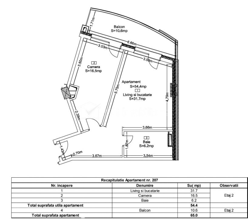 Appartement 2 chambres à vendre dans Cluj-napoca, zone Zorilor Cluj-Napoca, Zorilor 2 chambres • 54.4 m2 • 1 salle de bain • étage 2/14 • decomandatnemobilat prix de vente 160 800 € + 9 + 6 Vendu Caractéristiques Type de bien Appartement Non. Chambres 2 Non. cuisines 1 Non. salles de bains 1 Nombre de terrasses 1 Le stationnement non Surface construite 77 m2 Surface utile 54.4 m2 Compartiments Decomandat Confort 1 Etage 2/14 Construit avec Ciment Construction 2025 Description de l'appartement Appartement 2 pièces, 55 m² habitables + 11 m² de terrasse, résidence Wings, Zorilor – idéal pour vivre ou investir Caractéristiques : Surface habitable : 54,4 m², semi-fini Grande terrasse : 10,6 m², idéale pour se détendre Cloisonnement efficace : séjour + cuisine ouverte, chambre, salle de bains, couloir Étage intermédiaire | Immeuble avec ascenseur Issué au cadastre – disponible immédiatement Possibilité d'acquérir une place de parking : 15 000 EUR Description : Nous proposons à la vente un appartement moderne situé dans la résidence Wings, quartier Zorilor, à Cluj-Napoca. Ce projet est l'un des plus prisés de la ville, se distinguant par son architecture unique, ses matériaux de haute qualité et le confort offert à ses résidents. Avantages du complexe Wings : Architecture moderne et primée Espaces verts et espaces communs élégants Ascenseurs rapides, parkings souterrains et aériens Accès facile au centre-ville, à l'UMF, aux cliniques et hôpitaux, et aux transports en commun Opportunité d'investissement : Grâce à son emplacement et à la qualité du projet, cet appartement est idéal pour un logement personnel ou un investissement – location longue durée ou hôtel (zone très prisée). Photos à des fins de présentation commerciale et d'idées d'aménagement. Pour plus de détails et un calendrier de visite, n'hésitez pas à me contacter. ID de la propriété - P48332 Utilités, Finissages Utilités générales: Électricité, Eau, Evacuation des eaux usées, TV CâbleSystème chauffage Chauffage dans l’immeuble, Chauffage par le plancher Nombre de vues: 654 Réactualiser: 2025-08-13 11:26:50