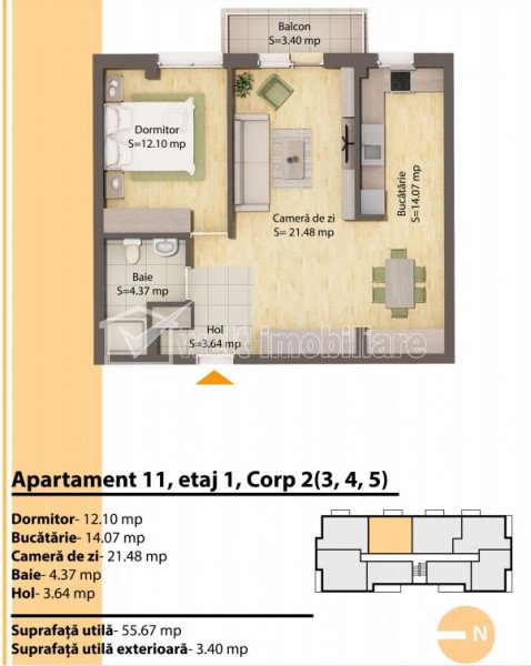 Caractéristiques Type de bien Appartement Non. Chambres 2 Non. cuisines 1 Non. salles de bains 1 Non. balcons 1 Non. de garages 1 Le stationnement oui Surface construite 60 m2 Surface utile 55.67 m2 Compartiments Decomandat Confort 1 Etage 3/3 Construit avec Brique Construction 2019 Description de l'appartement Welt Imobiliare négocie la vente d'un appartement de 2 pièces indépendant, situé à Floresti, quartier Terra. L'appartement est situé dans un immeuble neuf à isolation thermique et se compose d'un séjour, cuisine, 1 chambre, salle de bains, hall, balcon. Il est vendu à l'état semi-fini, équipé d'un système de chauffage central, chauffage au sol, chauffage au sol, porte extérieure. Vous pouvez acheter une place de parking souterrain pour 3500 euros ou une place de parking extérieure pour 2000 euros. Pour plus de détails et de visites, n'hésitez pas à nous contacter. ID de la propriété - P21464 Utilités, Finissages Utilités générales: Électricité, Eau, Evacuation des eaux uséesSystème chauffage Chauffage, Chauffage par le plancher Nombre de vues: 2591 Réactualiser: 2024-09-10 12:52:13