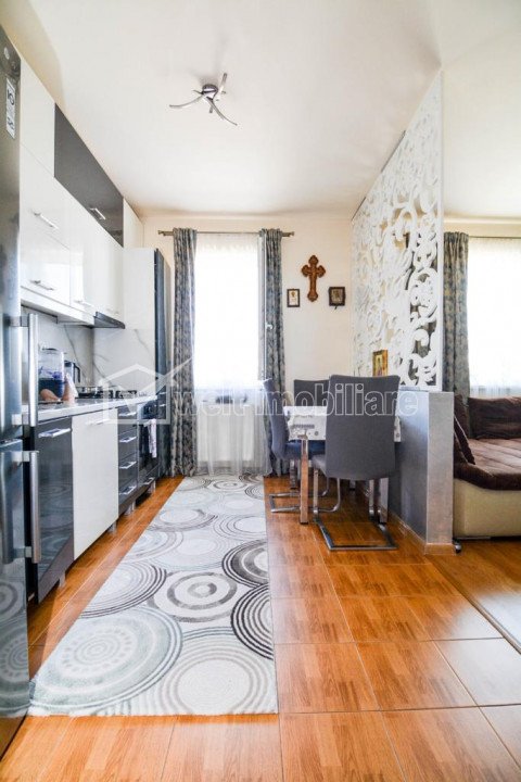 Appartement 2 chambres à vendre dans Floresti Floresti 2 chambres • 50 m2 • 1 salle de bain • étage 2/3 • semidecomandatfinisat prix de vente 84 000 € + 11 + 8 Vendu Caractéristiques Type de bien Appartement Non. Chambres 2 Non. cuisines 1 Non. salles de bains 1 Non. balcons 1 Le stationnement oui Surface construite 58 m2 Surface utile 50 m2 Compartiments Semidecomandat Confort 1 Etage 2/3 Construit avec Brique Construction 2015 Description de l'appartement Welt Imobiliare négocie la vente d'un appartement de 2 pièces, situé à Floresti, quartier du Stade. L'appartement est situé dans un immeuble neuf, isolé thermiquement, il se compose d'un séjour avec cuisine, 1 chambre, salle de bain, hall, balcon fermé. Il est vendu meublé et équipé, équipé d'un système de chauffage central, panneaux d'isolation thermique, porte métallique. Il dispose d'une place de parking incluse dans le prix. Pour plus de détails et de visites, n'hésitez pas à nous contacter. ID de la propriété - P33542 Utilités, Finissages Utilités générales: Électricité, Eau, Evacuation des eaux uséesSystème chauffage Chauffage, RadiateursFinissages Parquet, Grès, Lavable, Portes intérieures Nombre de vues: 2289 Réactualiser: 2024-09-10 12:50:58