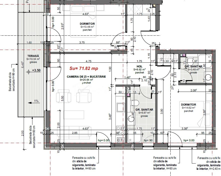 Appartement 3 chambres à vendre dans Apahida Apahida 3 chambres • 72 m2 • 2 salles de bains • étage 1/2 • decomandatnemobilat prix de vente négociable 118 800 € + VAT + 2 Caractéristiques Type de bien Appartement Non. Chambres 3 Non. cuisines 1 Non. salles de bains 2 Nombre de terrasses 1 Le stationnement non Surface construite 93 m2 Surface utile 72 m2 Compartiments Decomandat Confort Marit Etage 1/2 Construit avec Ciment Construction 2025 Description de l'appartement Appartement 3 pièces, surface habitable de 72 m², 2 chambres, dont une avec salle de bain privative, et terrasse de 10 m² ! Construction en rez-de-chaussée et 2e étage, petite résidence intime de seulement 15 appartements, construite avec goût. Bâtiment en béton armé, murs en briques de 25 cm, isolation en laine de basalte et façade ventilée en aluminium. Les appartements sont livrés semi-finis, avec leur propre centrale thermique et chauffage au sol, fenêtres à triple vitrage, murs en plâtre, mastic blanc et lavable. Place de parking extérieure : 3 000 euros, parking en sous-sol : 5 000 euros ID de la propriété - P47771 Utilités, Finissages Utilités générales: Électricité, Eau, Gaz, Evacuation des eaux usées, TV CâbleSystème chauffage Chauffage, Chauffage par le plancherFinissages LavableEquipements Compteurs gaz Nombre de vues: 964 Réactualiser: 2025-11-07 13:40:45