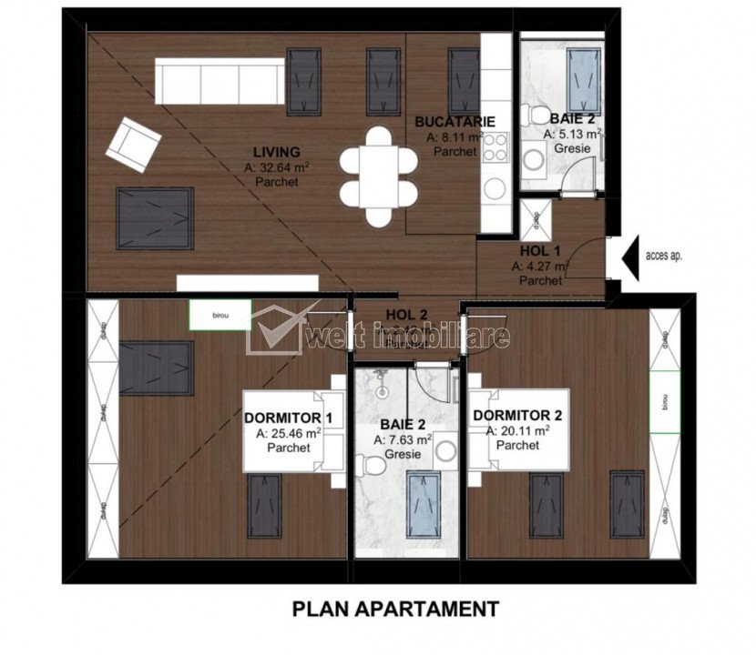 Caractéristiques Type de bien Appartement Non. Chambres 3 Non. cuisines 1 Non. salles de bains 2 Le stationnement non Surface construite 115 m2 Surface utile 108 m2 Compartiments Semidecomandat Confort 1 Etage mansarde/2 Description de l'appartement Welt Imobiliare agence Cluj-Napoca offre pour vente appartement avec 3 chambres, situé à Cluj-napoca, zone Borhanci. D'appartement confort 1 semidecomandat est situé à Mansarde dans un bloc avec 2 etages, a 1 cuisine, 2 salles de bains .D'appartement est finisat a parquet, grès, faïence, Lavable, portes intérieures, chauffage, compteurs gaz. Certaines finitions sont: izolatii termice (interior, bloc izolat termic), pereti (vopsea lavabila, faianta), podele (parchet, gresie), ferestre cu geam termopan (pvc), usa intrare (metal), usi interior (celulare) Les dotations de l'esprit: bucatarie (mobilata, utilata), contorizare (contor gaz), mobilat (complet), dotari imobil (interfon), electrocasnice (frigider, aragaz, tv, cafetiera, cuptor microunde, hota) ID de la propriété - P7025 Utilités, Finissages Utilités générales: Électricité, Eau, Gaz, Evacuation des eaux uséesSystème chauffage ChauffageClimatisation ConditionnementFinissages Parquet, Grès, Faïence, Lavable, Portes intérieuresEquipements Compteurs gaz Nombre de vues: 1009 Réactualiser: 2024-02-12 11:44:48