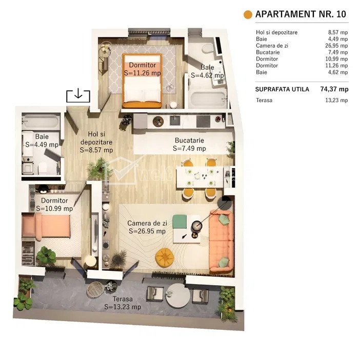 Appartement 3 chambres à vendre dans Cluj-napoca, zone Centru Cluj-Napoca, Centru 3 chambres • 74.37 m2 • 2 salles de bains • étage 3/2 • semidecomandat prix de vente négociable 298 000 € + VAT + 8 + 5 Caractéristiques Type de bien Appartement Non. Chambres 3 Non. cuisines 1 Non. salles de bains 2 Nombre de terrasses 1 Le stationnement non Surface utile 74.37 m2 Compartiments Semidecomandat Confort Marit Etage 3/2 Construction 2024 Description de l'appartement Welt Imobiliare présente un nouveau projet résidentiel exclusif, situé en plein cœur de la ville, à seulement 2 minutes à pied du Parc Central. L'emplacement de l'immeuble est idéal, tant en termes d'accessibilité que grâce à la proximité de nombreux points d'intérêt, tels que : - Parc Cetatuia - Parc Central Simion Barnutiu - Places Muzeului, Mihai Viteazu et Unirii - Cluj Arena et Sala Polivalenta - La promenade Somes, récemment aménagée - Commerces de proximité, transports en commun, pharmacies, banques, restaurants, cafés, écoles et crèches… L'immeuble, d'une hauteur de 2 sous-sols + rez-de-chaussée + 2 étages + 4 niveaux, abritera au rez-de-chaussée deux espaces commerciaux, l'un de 98 m² et l'autre de 112 m². Les étages supérieurs proposeront des appartements de 2, 3 et 4 pièces, avec de vastes jardins ou terrasses allant jusqu'à 171 m². L'immeuble est également équipé d'un ascenseur. Date d'achèvement prévue : juin 2025. Les appartements sont livrés semi-finis et présentent les caractéristiques suivantes : - Murs enduits et lissés - Chauffage au sol - Coffres-forts et volets roulants motorisés - Murs intérieurs et extérieurs en briques - Murs mitoyens en briques remplies de laine de basalte - Pré-équipement pour la climatisation - Façade ventilée et enduit décoratif - Isolation de 10 cm en laine de basalte. Modalités de paiement : * Acompte minimum : 30 % * À la signature : 30 % * À la remise des clés : 30 % * Chez le notaire : 10 % Le prix affiché est hors TVA. Le montant affiché correspond à un paiement échelonné, avec un acompte minimum de 75 %. Le prix est négociable. Des places de parking souterrain sont disponibles au prix de 24 000 €. Pour plus de détails, n'hésitez pas à nous contacter, L'équipe Welt Imobiliare ! ID de la propriété - P42364 Utilités, Finissages Utilités générales: Électricité, Eau, Gaz, Evacuation des eaux uséesSystème chauffage Chauffage, Chauffage par le plancher Nombre de vues: 494 Réactualiser: 2026-01-23 15:38:15