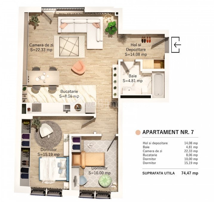 + 8 + 5 Caractéristiques Type de bien Appartement Non. Chambres 3 Non. cuisines 1 Non. salles de bains 2 Nombre de terrasses 1 Le stationnement non Surface utile 74.37 m2 Compartiments Semidecomandat Confort Marit Etage 3/2 Construction 2024 Description de l'appartement Welt Imobiliare présente un nouveau projet résidentiel exclusif, situé en plein cœur de la ville, à seulement 2 minutes à pied du Parc Central. L'emplacement de l'immeuble est idéal, tant en termes d'accessibilité que grâce à la proximité de nombreux points d'intérêt, tels que : - Parc Cetatuia - Parc Central Simion Barnutiu - Places Muzeului, Mihai Viteazu et Unirii - Cluj Arena et Sala Polivalenta - La promenade Somes, récemment aménagée - Commerces de proximité, transports en commun, pharmacies, banques, restaurants, cafés, écoles et crèches… L'immeuble, d'une hauteur de 2 sous-sols + rez-de-chaussée + 2 étages + 4 niveaux, abritera au rez-de-chaussée deux espaces commerciaux, l'un de 98 m² et l'autre de 112 m². Les étages supérieurs proposeront des appartements de 2, 3 et 4 pièces, avec de vastes jardins ou terrasses allant jusqu'à 171 m². L'immeuble est également équipé d'un ascenseur. Date d'achèvement prévue : juin 2025. Les appartements sont livrés semi-finis et présentent les caractéristiques suivantes : - Murs enduits et lissés - Chauffage au sol - Coffres-forts et volets roulants motorisés - Murs intérieurs et extérieurs en briques - Murs mitoyens en briques remplies de laine de basalte - Pré-équipement pour la climatisation - Façade ventilée et enduit décoratif - Isolation de 10 cm en laine de basalte. Modalités de paiement : * Acompte minimum : 30 % * À la signature : 30 % * À la remise des clés : 30 % * Chez le notaire : 10 % Le prix affiché est hors TVA. Le montant affiché correspond à un paiement échelonné, avec un acompte minimum de 75 %. Le prix est négociable. Des places de parking souterrain sont disponibles au prix de 24 000 €. Pour plus de détails, n'hésitez pas à nous contacter, L'équipe Welt Imobiliare ! ID de la propriété - P42364 Utilités, Finissages Utilités générales: Électricité, Eau, Gaz, Evacuation des eaux uséesSystème chauffage Chauffage, Chauffage par le plancher Nombre de vues: 494 Réactualiser: 2026-01-23 15:38:15