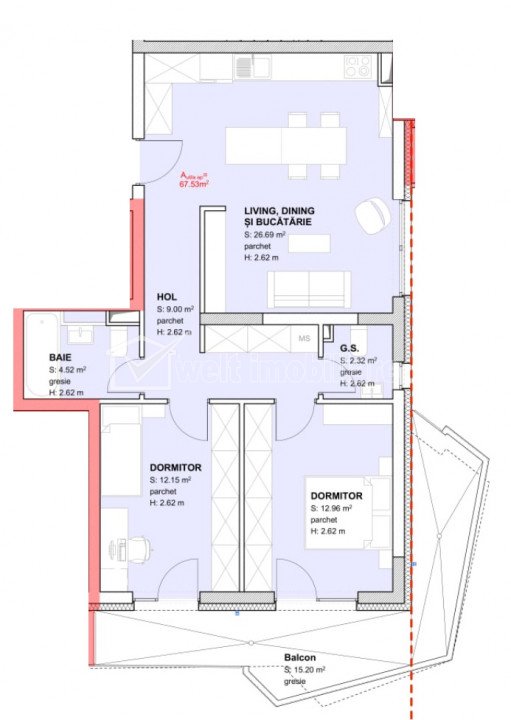 Appartement 3 chambres à vendre dans Cluj-napoca, zone Gheorgheni Cluj-Napoca, Gheorgheni 3 chambres • 68 m2 • 2 salles de bains • étage 6/8 • decomandat prix de vente 149 500 € 149 450 € + 10 + 7 Vendu Caractéristiques Type de bien Appartement Non. Chambres 3 Non. cuisines 1 Non. salles de bains 2 Nombre de terrasses 1 Le stationnement non Surface construite 94 m2 Surface utile 68 m2 Compartiments Decomandat Confort Marit Etage 6/8 Construit avec Brique Construction 2023 Description de l'appartement Welt Imobiliare agence Cluj-Napoca offre pour vente appartement avec 3 chambres, situé à Cluj-napoca, zone Gheorgheni. D'appartement confort marit decomandat est situé à etages 6 dans un bloc avec 8 etages, a 1 cuisine, 2 salles de bains . a TV par câble. Certaines finitions sont: izolatii termice (exterior), ferestre cu geam termopan (pvc), usa intrare (metal) ID de la propriété - P39823 Utilités, Finissages Utilités générales: Électricité, Eau, Evacuation des eaux usées, TV CâbleSystème chauffage Chauffage dans l’immeuble, Chauffage par le plancher Nombre de vues: 1324 Réactualiser: 2023-12-05 09:15:42