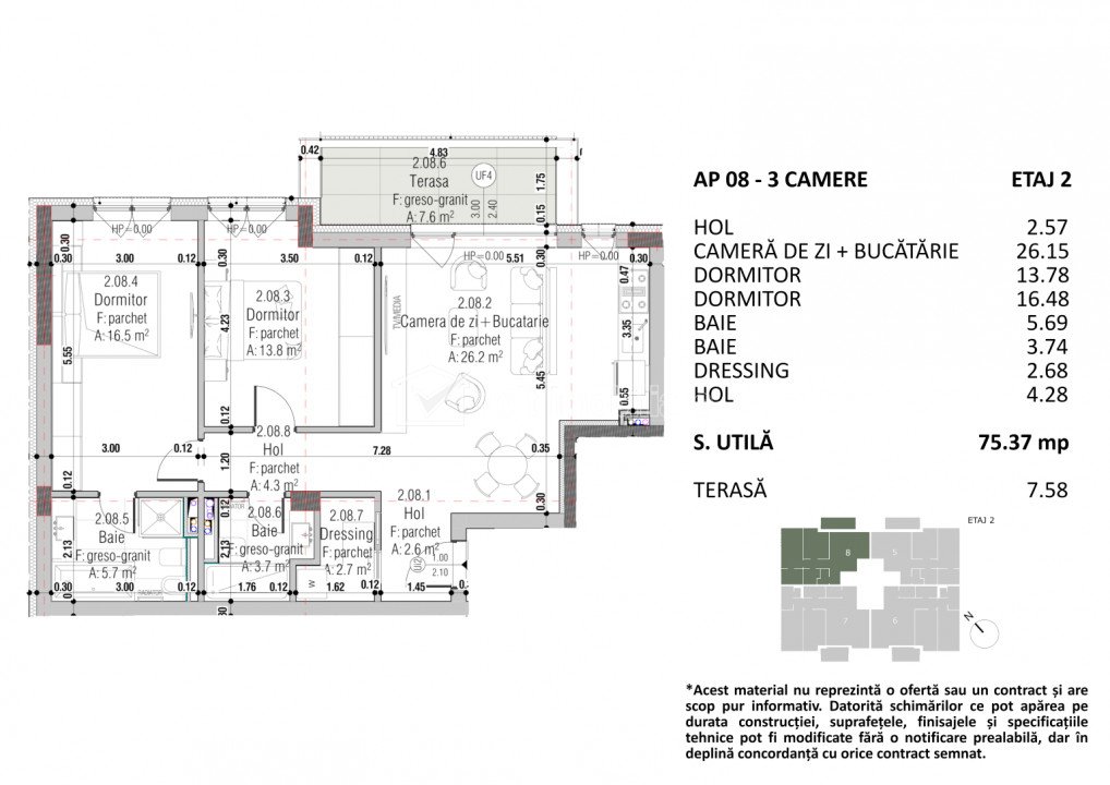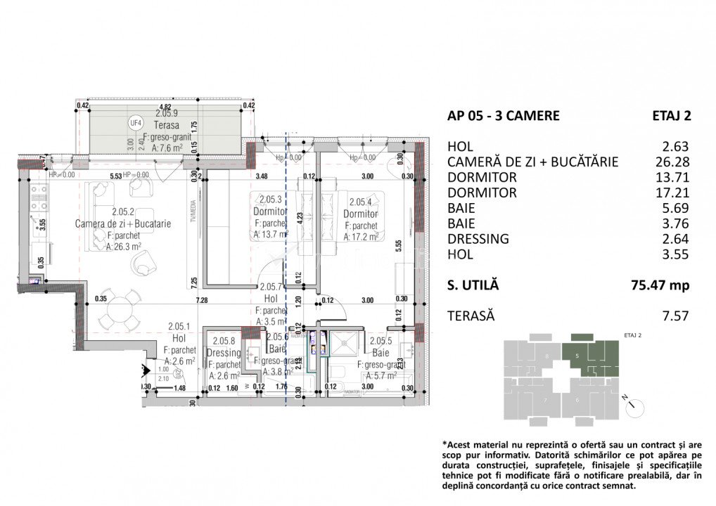 Caractéristiques Type de bien Appartement Non. Chambres 3 Non. cuisines 1 Non. salles de bains 2 Non. balcons 1 Non. de garages 1 Le stationnement non Surface construite 93 m2 Surface utile 75 m2 Compartiments Semidecomandat Confort Marit Etage 2/5 Construit avec Brique Construction 2025 Description de l'appartement Welt Imobiliare recommande l'offre de vente d'un immeuble neuf avec des appartements premium de 3 et 4 pièces, situé dans la zone mixte de maisons et d'immeubles du quartier Gheorgheni. Situés à quelques minutes de la place Cipariu, du parc Engels, du centre commercial Iulius et du centre-ville, dans l'un des quartiers les plus exclusifs de Cluj-Napoca, les appartements s'adressent à ceux qui aiment la ville et la vie active, mais à tout en appréciant la proximité des espaces verts. Les appartements bénéficient d'un accès facile aux transports en commun, aux supermarchés, aux écoles et aux jardins d'enfants. Chaque appartement bénéficie de places de parking souterraines, qui peuvent être achetées séparément. Les surfaces disponibles sont de 75 m² et 92 m² pour les appartements 3 pièces et 99 m² pour les appartements 4 pièces (et terrasses de 65 m² au total). Les appartements sont livrés semi-finis avec les finitions et équipements suivants inclus : -Installations thermiques, électriques et sanitaires réalisées et mises en place -Système de chauffage avec centrale de chaleur professionnelle montée sur le bâtiment, en condensation et pompes à chaleur -Système de chauffage au sol -Les murs sont enduits d'une seule couche de plâtre -Creuser -Menuiserie PVC REHAU, tripan, baguette chaude et filtre de protection solaire. -Fenestration généreuse avec surface vitrée au niveau du sol. - Porte métallique anti-effraction, avec isolation thermique et phonique, fermant en 6 points minimum -Interphone vidéo -Balcons et terrasses finis avec des carreaux de céramique extérieurs. -Façade et thermosystème avec un haut degré d'isolation phono et thermique (brique 25 cm + laine de basalte 15 cm) -Climatiseurs inclus pour chaque appartement -Le bâtiment est en brique (murs extérieurs et murs entre appartements de 25 cm d'épaisseur, murs intérieurs de 12 cm) Les modes de paiement sont flexibles et adaptables pour bénéficier du meilleur plan de paiement et/ou de financement. Les avances versées lors de la signature de l'avant-contrat notarié s'accompagnent d'avantages et de réductions pour les acheteurs. Prix standard de paiement par tranche : -30% Pré-contrat -30% Achèvement de la structure -40% CF L'avance minimale acceptée lors de la signature de l'avant-contrat notarié est de 30% de la valeur de la transaction. – Date estimée d’achèvement de l’ouvrage : décembre 2024 - Date de réalisation du projet et d'obtention des CF : décembre 2025 Le prix d'une place de parking dans le parking souterrain est de 20 000 euros + TVA ID de la propriété - P45180 Utilités, Finissages Utilités générales: Électricité, Eau, Evacuation des eaux usées, TV CâbleSystème chauffage Chauffage dans l’immeuble, Chauffage par le plancher Nombre de vues: 1857 Réactualiser: 2025-11-26 14:56:21