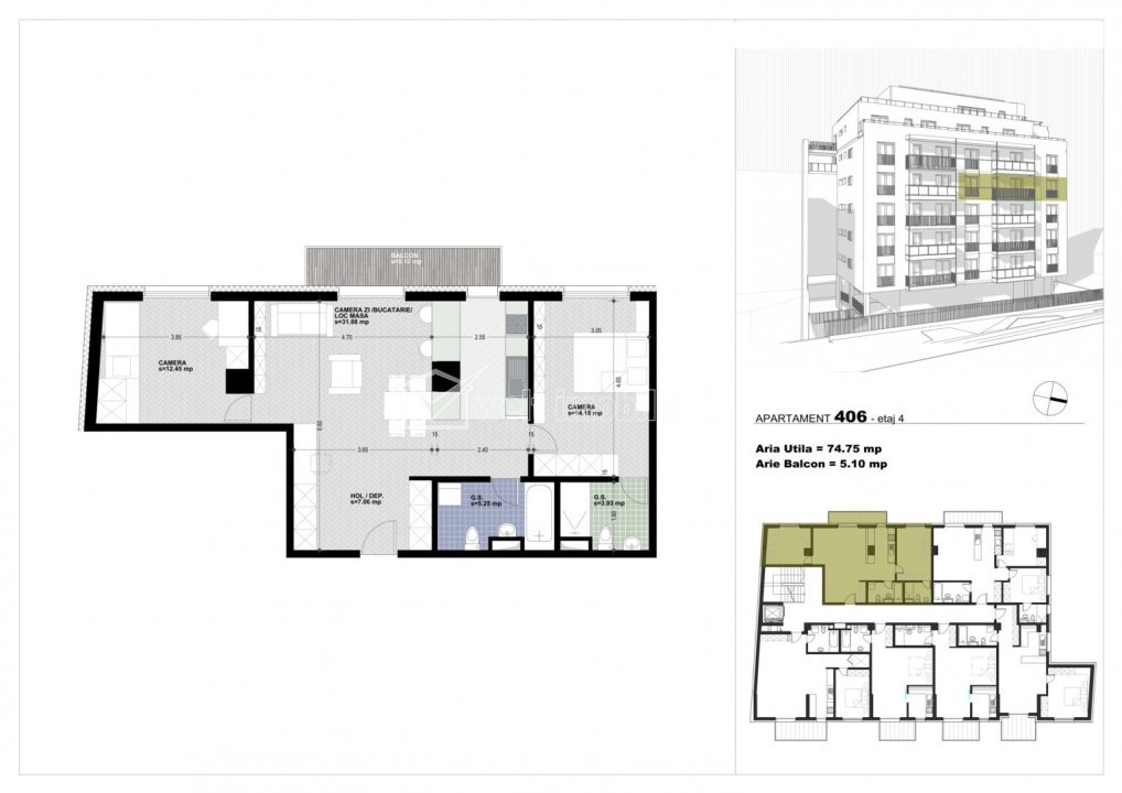 Cluj-Napoca, Marasti 3 chambres • 75 m2 • 2 salles de bains • étage 3/6 • semidecomandatnecesita renovare • nemobilat