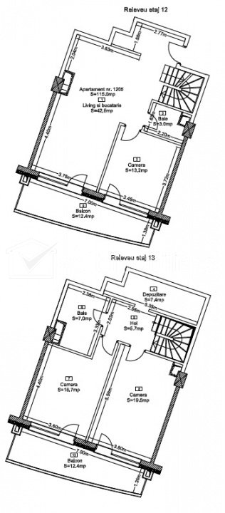 Caractéristiques Type de bien Appartement Non. Chambres 4 Non. cuisines 1 Non. salles de bains 2 Non. balcons 2 Le stationnement oui Surface construite 150 m2 Surface utile 114 m2 Compartiments Decomandat Confort 1 Etage 10/14 Construit avec Ciment Construction 2025 Description de l'appartement Appartement duplex dans la résidence Wings, à Zorilor | 114 m² habitables, 10e et 11e étages avec escalier intérieur 2 terrasses, 3 chambres, 2 salles de bains, 2 places de parking Surface habitable : 114 m², semi-fini, orientation sud-ouest avec vue panoramique sur Manastur et Grigorescu 2 généreuses terrasses de 12 m² chacune, ensoleillées et offrant une vue magnifique. Agencement : séjour avec cuisine ouverte, 3 chambres spacieuses, 2 salles de bains, espace de rangement 2 places de parking incluses : une au rez-de-chaussée, une à l'étage (avec ascenseur) Immeuble enregistré auprès de la CF, TVA non applicable ID de la propriété - P53208 Utilités, Finissages Utilités générales: Électricité, Eau, Evacuation des eaux usées, TV CâbleSystème chauffage Chauffage dans l’immeuble, Chauffage par le plancher Nombre de vues: 53 Réactualiser: 2026-02-10 17:56:53