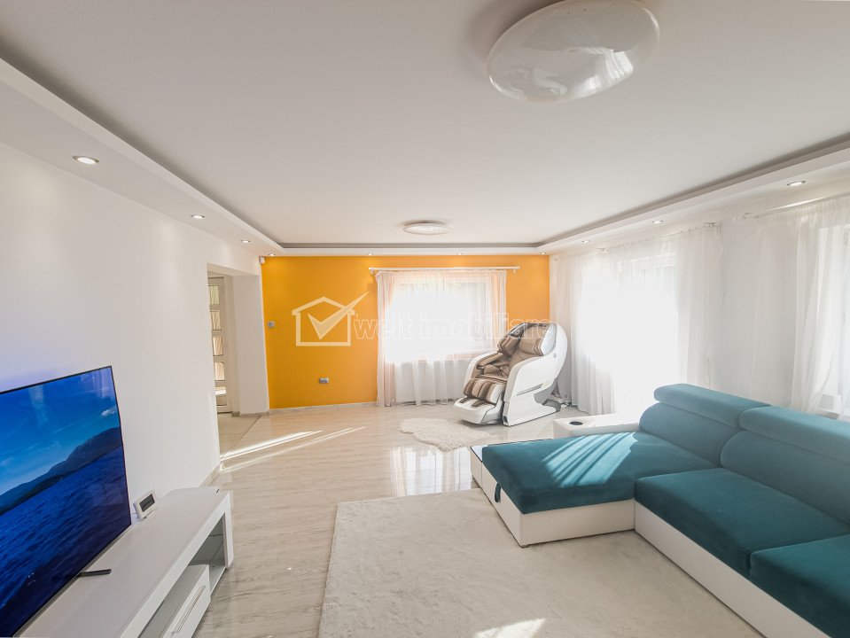 Caractéristiques Type de bien Maison Non. Chambres 4 Non. cuisines 1 Non. salles de bains 2 Non. balcons 2 Surface terrasse 13.00 mp Non. de garages 3 Le stationnement oui Sous-sol oui Jardin non Surface utile 140 m2 Surface construite 153 m2 Surface terrain 730 m2 Etage 1 Struct. résistance Brique Construction 2010 Finissages: Parquet, Grès, Faïence, Portes intérieures, TV
