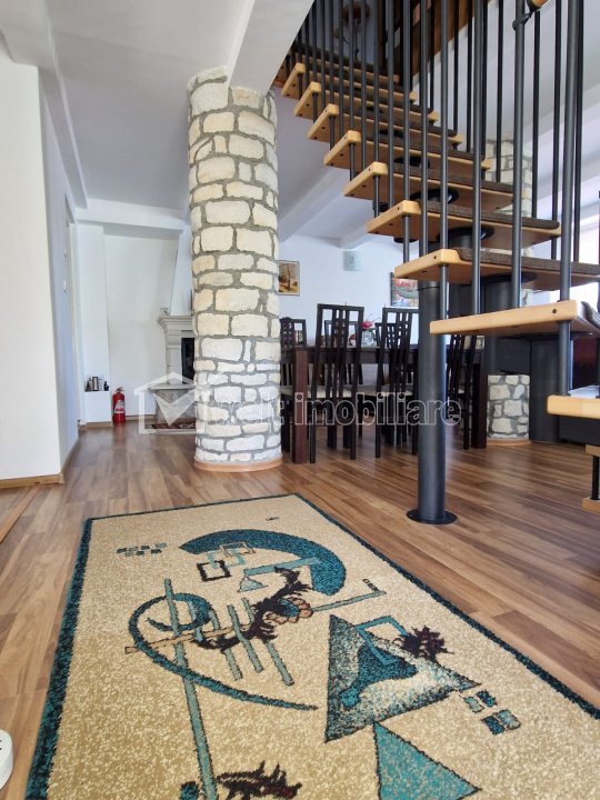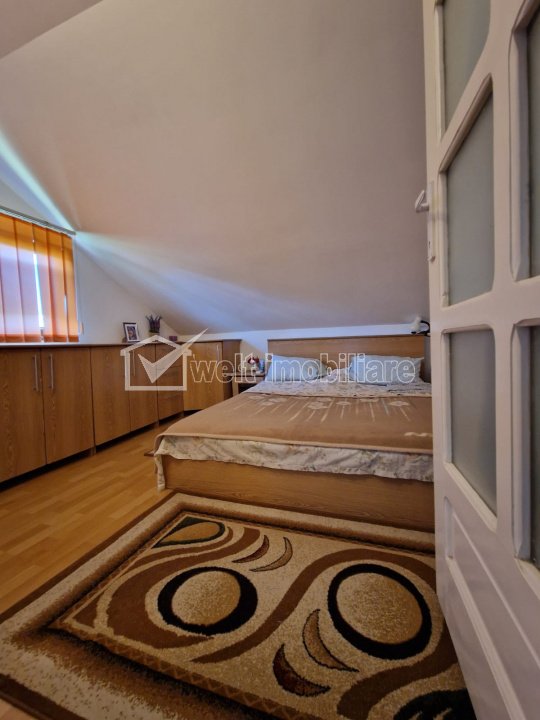 Caractéristiques Type de bien Maison Non. Chambres 4 Non. cuisines 2 Non. salles de bains 3 Non. balcons 1 Nombre de terrasses 2 Surface terrasse 16.00 mp Non. de garages 1 Le stationnement oui Sous-sol oui Jardin oui Surface utile 150 m2 Surface terrain 1510 m2 No. fronts 25 m Etage 1 Struct. résistance Bois Construction 2005 Finissages: Parquet, Grès, Faïence, Portes intérieures, TV