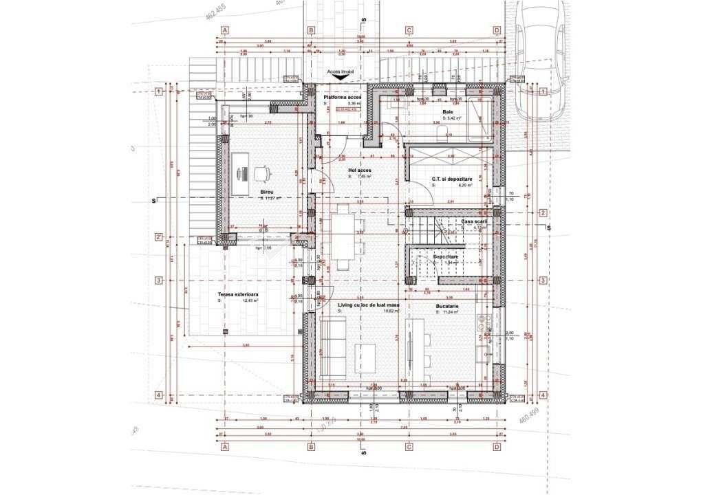 Caractéristiques Type de bien Maison Non. Chambres 5 Non. cuisines 1 Non. salles de bains 3 Non. balcons 1 Nombre de terrasses 2 Surface terrasse 40.00 mp Le stationnement oui Sous-sol non Jardin oui Surface utile 117 m2 Surface construite 170 m2 Surface terrain 611 m2 No. fronts 25 m Etage 1 Struct. résistance Brique Construction 2022