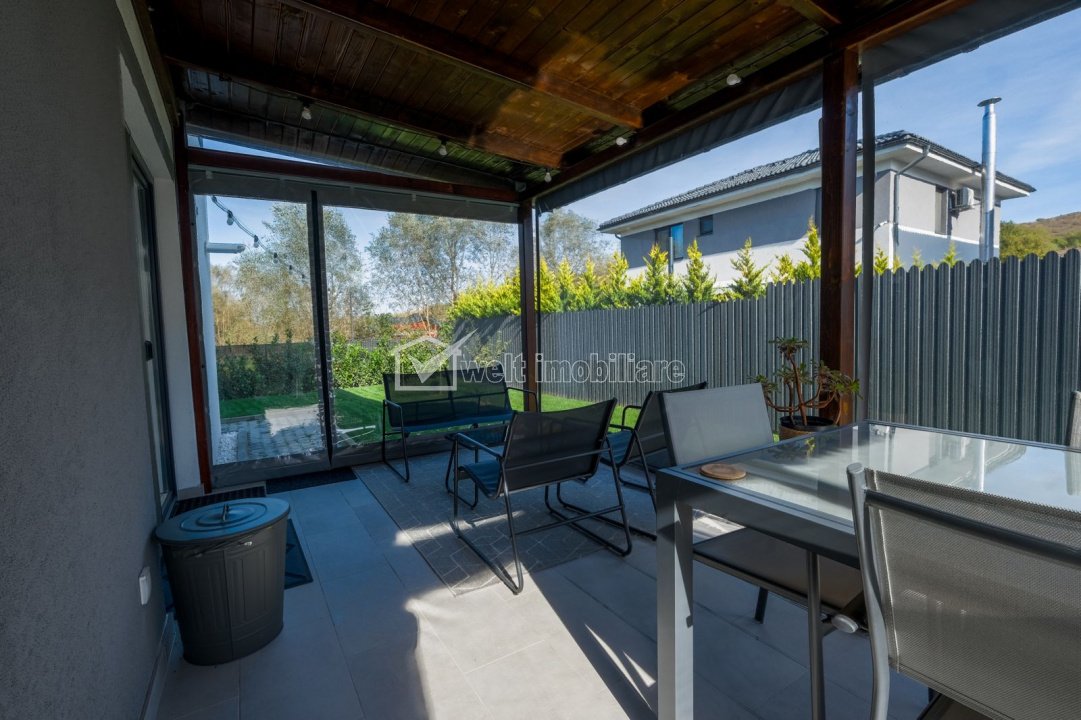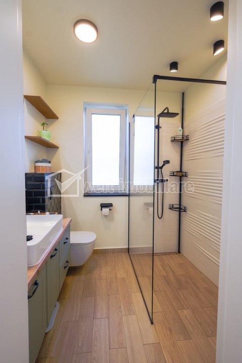 Caractéristiques Type de bien Maison Non. Chambres 5 Non. cuisines 1 Non. salles de bains 3 Nombre de terrasses 1 Surface terrasse 8.00 mp Non. de garages 1 Le stationnement oui Sous-sol non Jardin non Surface utile 128 m2 Surface construite 159 m2 Surface terrain 568 m2 No. fronts 24 m Etage 1 Struct. résistance Brique Construction 2021 Finissages: Parquet, Grès, Faïence, TV