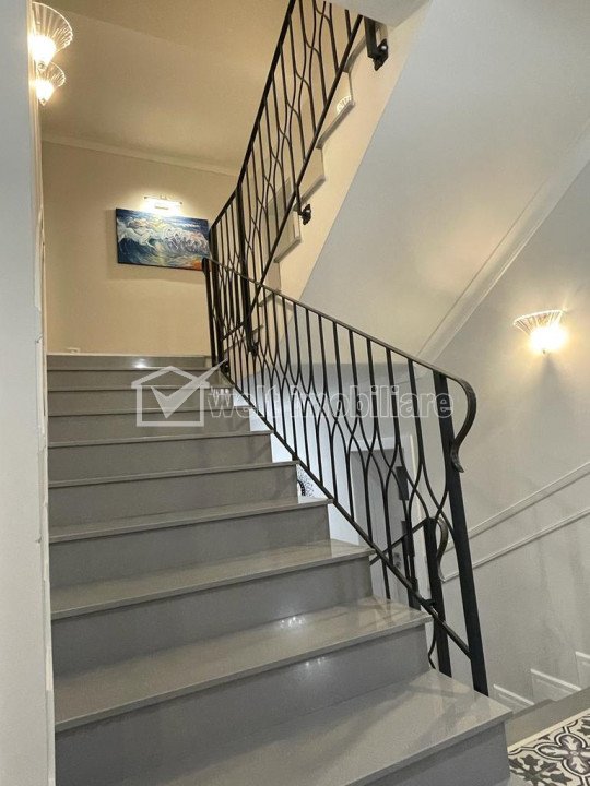 Caractéristiques Type de bien Maison Non. Chambres 6 Non. cuisines 1 Non. salles de bains 3 Non. balcons 1 Nombre de terrasses 2 Surface terrasse 70.00 mp Non. de garages 1 Le stationnement oui Sous-sol non Jardin oui Surface utile 240 m2 Surface construite 314 m2 Surface terrain 536 m2 No. fronts 17 m Etage 1 Struct. résistance Ciment Construction 2019 Finissages: Parquet, Grès, Portes intérieures