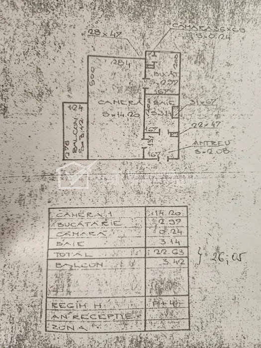 Studio à vendre dans Cluj-napoca, zone Zorilor Cluj-Napoca, Zorilor 1 chambre • 23 m2 • 1 salle de bain • étage 4/4finisat • mobilat complet prix de vente négociable 70 500 € + 7 + 4 Vendu Caractéristiques Type de bien Studio Non. Chambres 1 Non. cuisines 1 Non. salles de bains 1 Non. balcons 1 Le stationnement non Surface construite 31 m2 Surface utile 23 m2 Confort 1 Etage 4/4 Construit avec Brique Construction 1980 Description du studio Welt Imobiliare vous propose à la vente un studio d'une surface utile de 23 m², quartier Luis Pasteur, quartier Zorilor. Le studio est situé au 4ème étage, dans un immeuble de 4 étages, en angle, offrant une vue sur le Jardin Botanique. Il est composé d'une pièce, 1 cuisine, 1 cellier, 1 salle de bain et 1 balcon (fermé avec fenêtres thermopane). Le quartier où se trouve le bâtiment est calme, proche des commerces, des arrêts de bus, l'accès au centre-ville, ainsi qu'à d'autres destinations, étant facile. Il est vendu équipé et meublé comme le montrent les photos, son chauffage provient du système central de l'immeuble. Le studio est vendu avec des locataires prenant la relève ! Pour planifier une visite, n'hésitez pas à nous contacter. L'équipe de Welt Immobiliare ID de la propriété - P36386 Utilités, Finissages Utilités générales: Électricité, Eau, Gaz, Evacuation des eaux uséesSystème chauffage Chauffage dans l’immeuble, RadiateursFinissages Parquet, Grès, Faïence, Lavable, Portes intérieuresEquipements Compteurs gaz Nombre de vues: 1680 Réactualiser: 2024-06-27 14:30:40